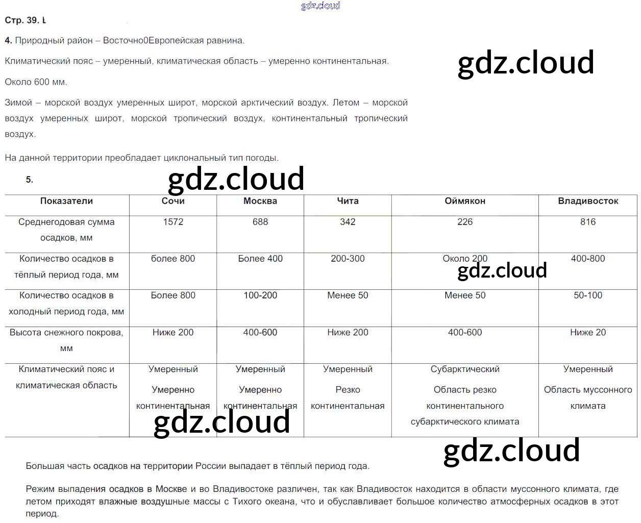 Ответ на задание 39 Тетрадь-тренажер География за 8 (восьмой) класс Ольховая, Банников Сферы 2016 ФГОС онлайн и без номера телефона.