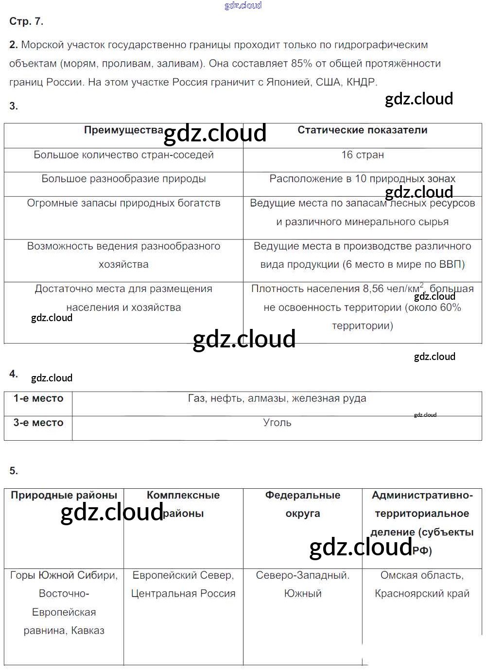 Ответ на задание 7 Тетрадь-тренажер География за 8 (восьмой) класс Ольховая, Банников Сферы 2016 ФГОС онлайн и без номера телефона.