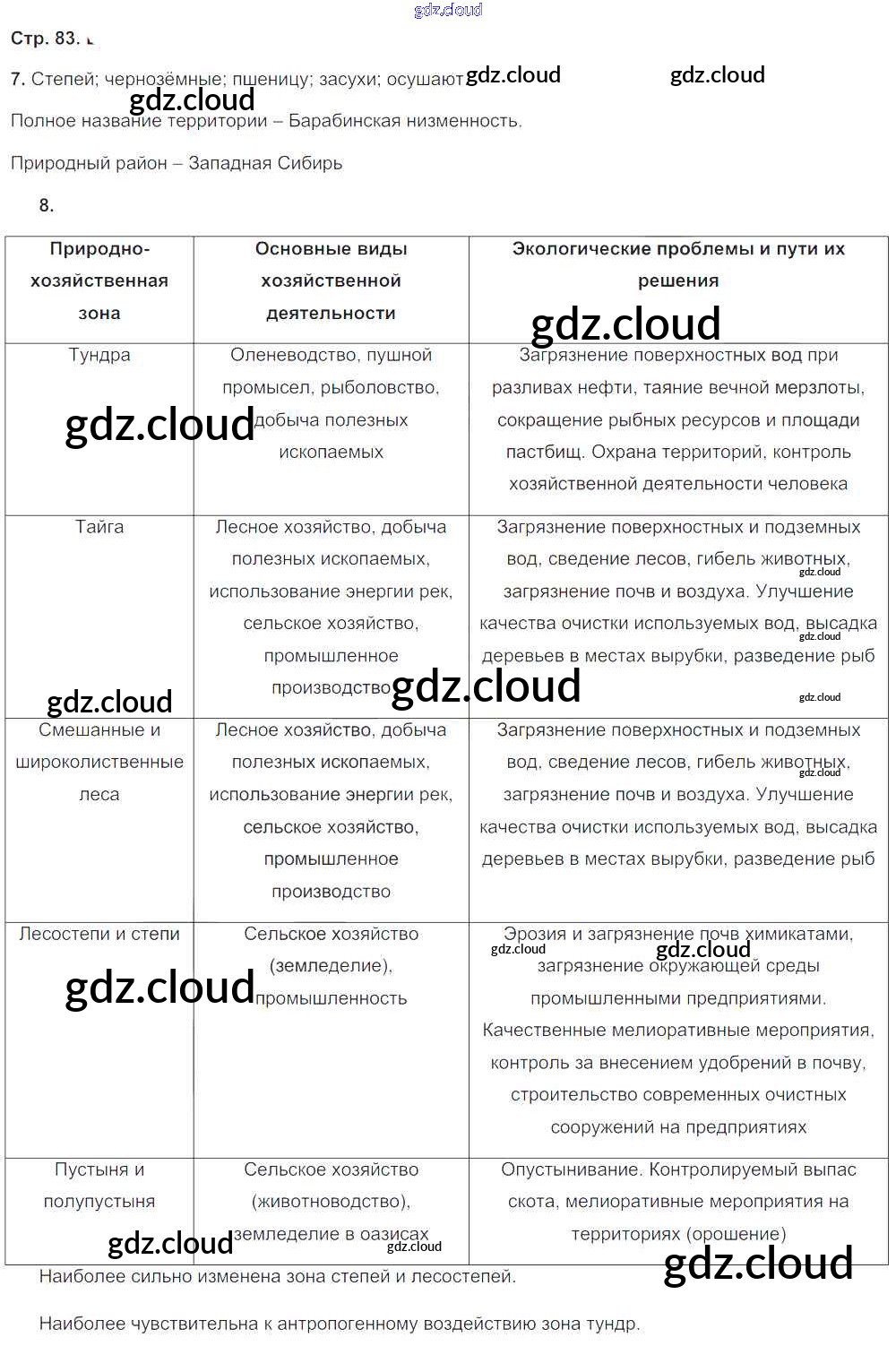 Ответ на задание 83 Тетрадь-тренажер География за 8 (восьмой) класс Ольховая, Банников Сферы 2016 ФГОС онлайн и без номера телефона.