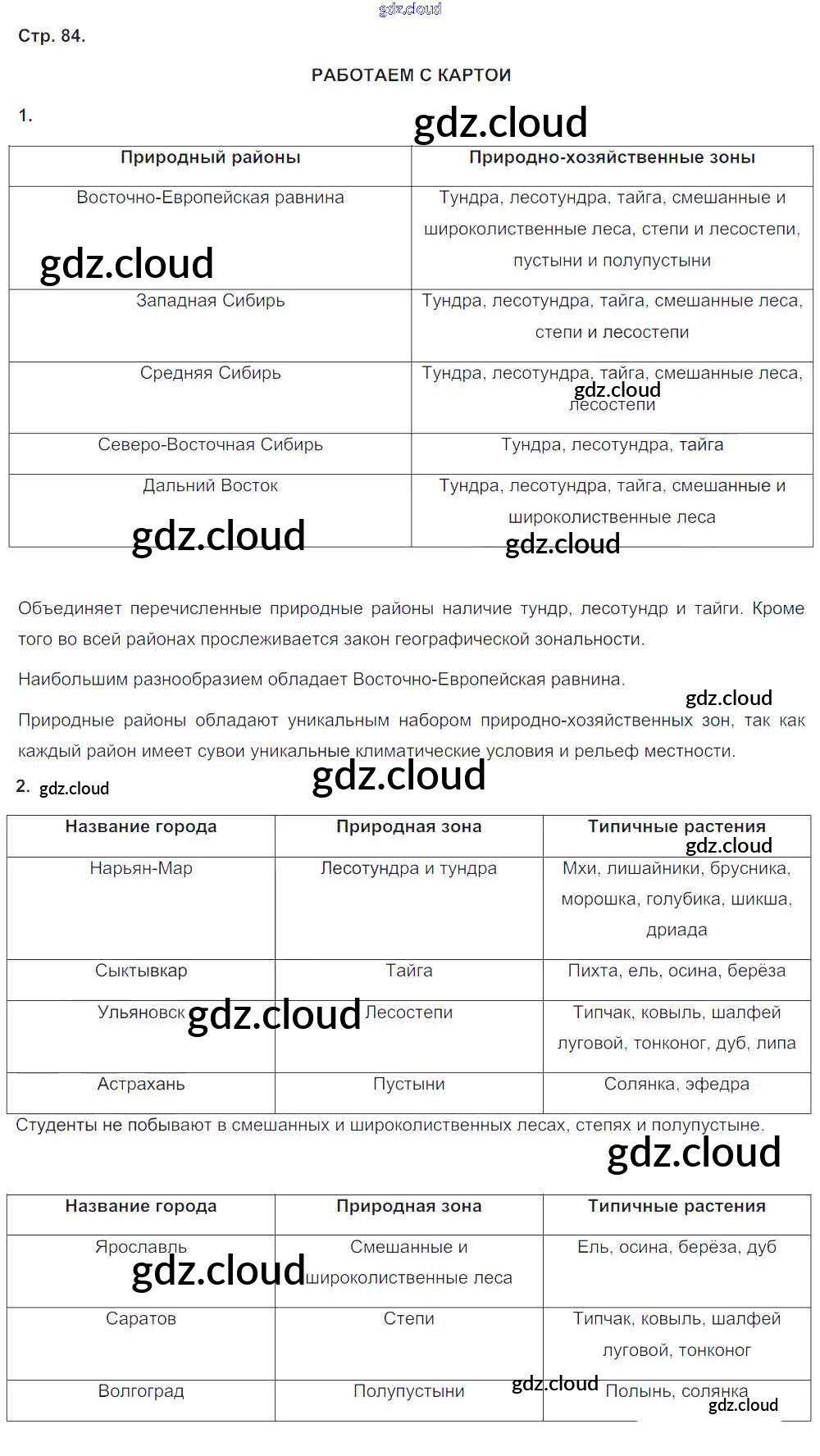 Ответ на задание 84 Тетрадь-тренажер География за 8 (восьмой) класс Ольховая, Банников Сферы 2016 ФГОС онлайн и без номера телефона.