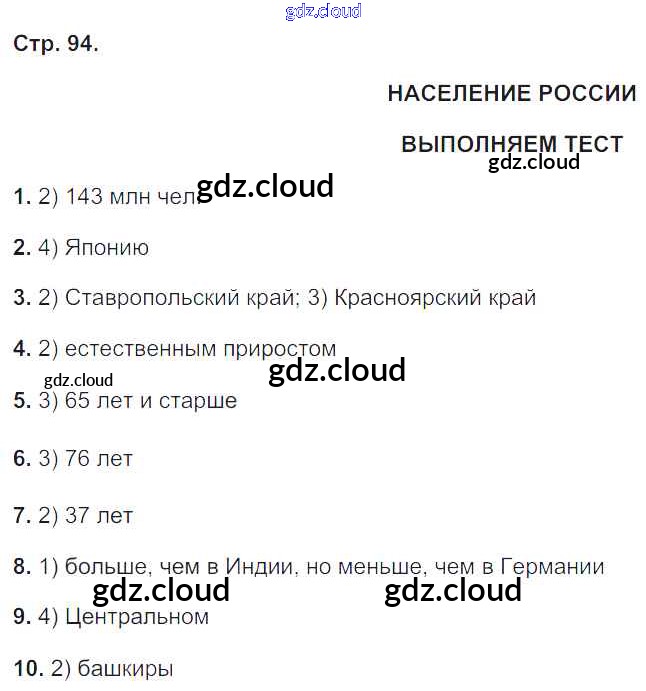 Ответ на задание 94 Тетрадь-тренажер География за 8 (восьмой) класс Ольховая, Банников Сферы 2016 ФГОС онлайн и без номера телефона.