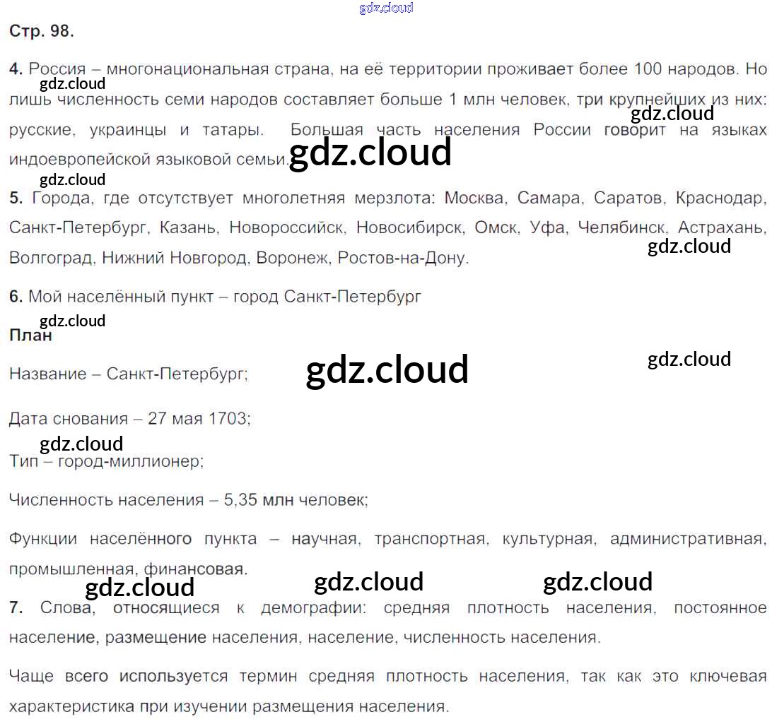 Ответ на задание 98 Тетрадь-тренажер География за 8 (восьмой) класс Ольховая, Банников Сферы 2016 ФГОС онлайн и без номера телефона.