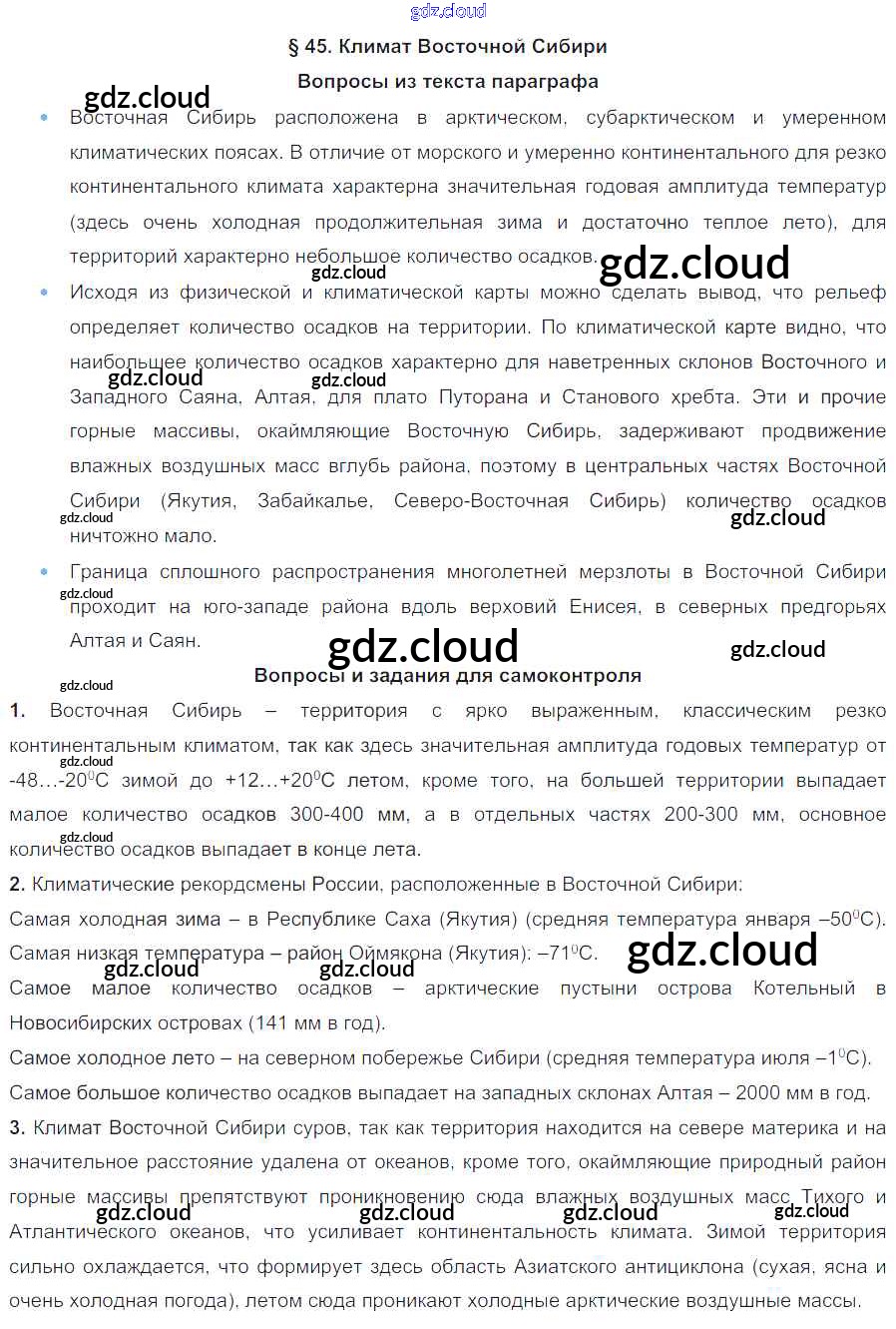 Ответ на задание 45 Учебник География за 8 (восьмой) класс Баринова УМК 2019 ФГОС онлайн и без номера телефона.