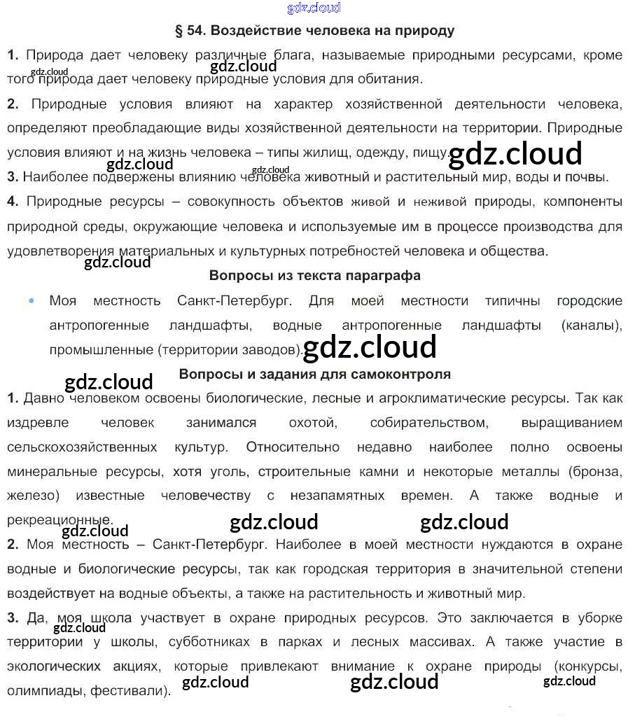 Ответ на задание 54 Учебник География за 8 (восьмой) класс Баринова УМК 2019 ФГОС онлайн и без номера телефона.
