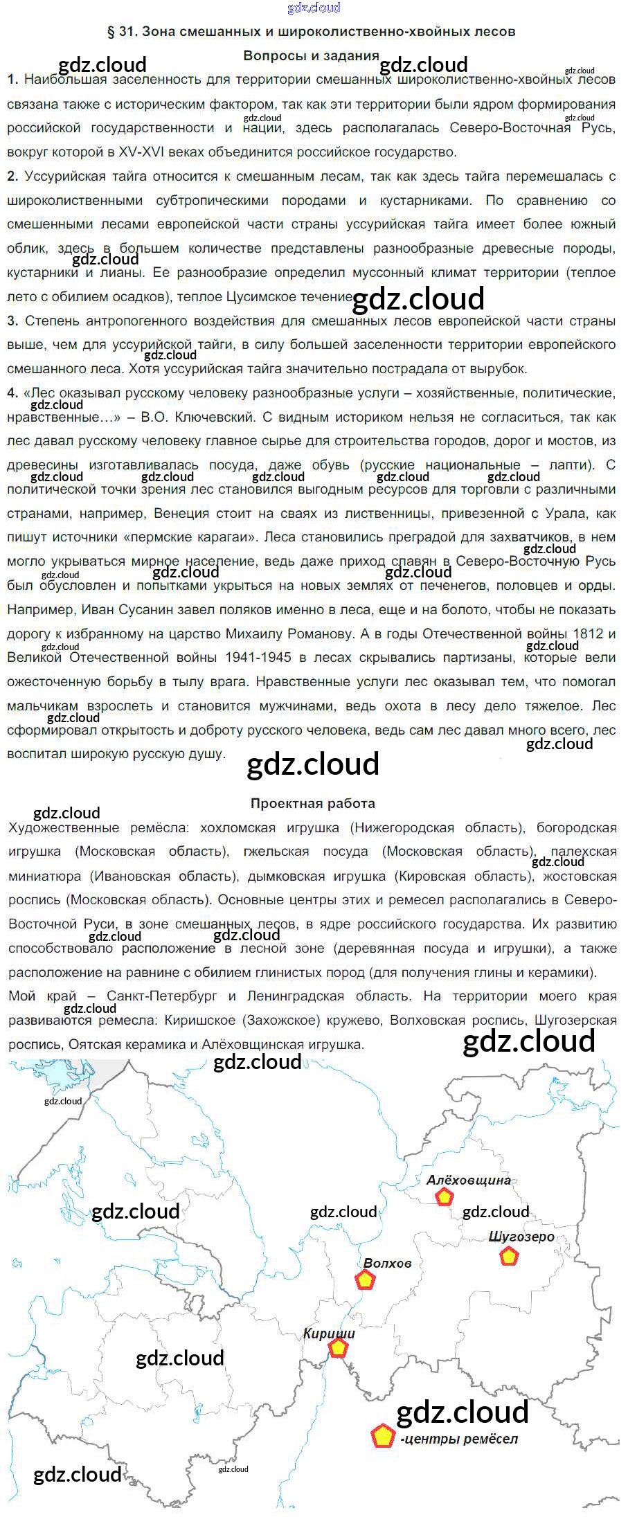 Ответ на задание 31 Учебник География за 8 (восьмой) класс Алексеев УМК 2018 ФГОС онлайн и без номера телефона.