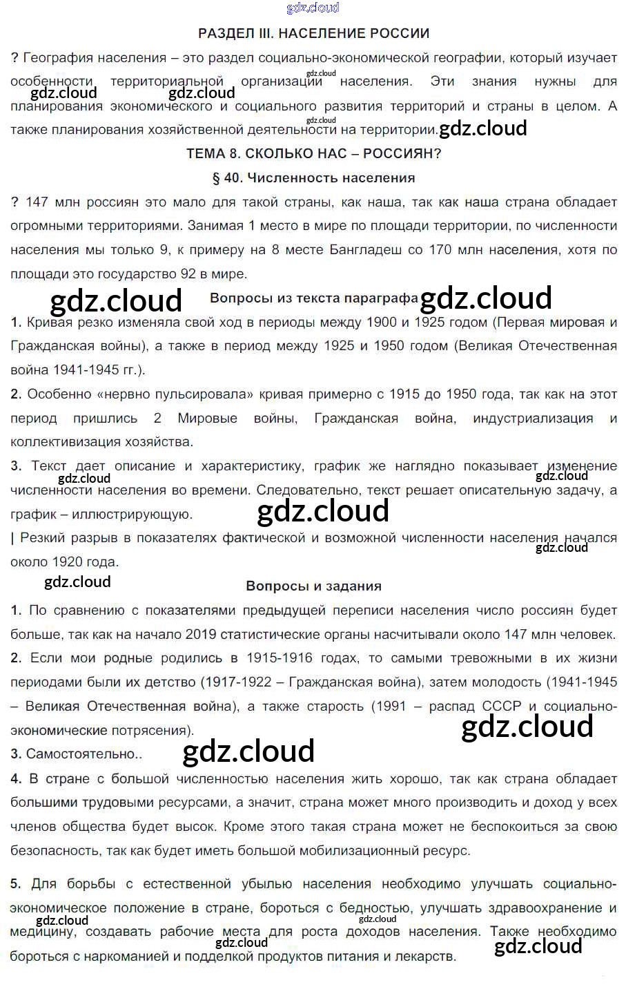 Ответ на задание 40 Учебник География за 8 (восьмой) класс Алексеев УМК 2018 ФГОС онлайн и без номера телефона.