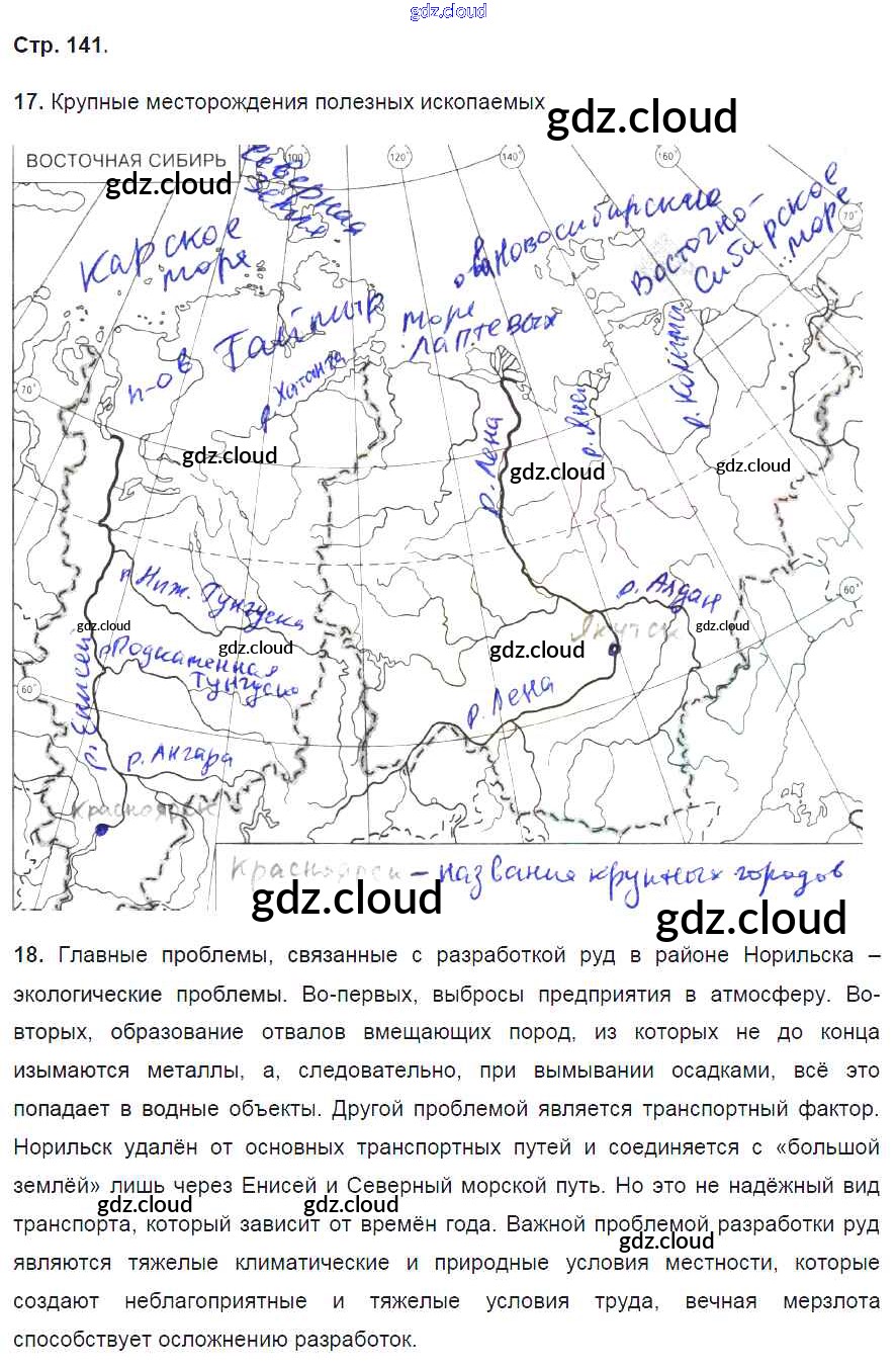 Ответ на задание 141 Рабочая тетрадь География за 9 (девятый) класс Баринова, Дронов Вертикаль 2016 ФГОС онлайн и без номера телефона.