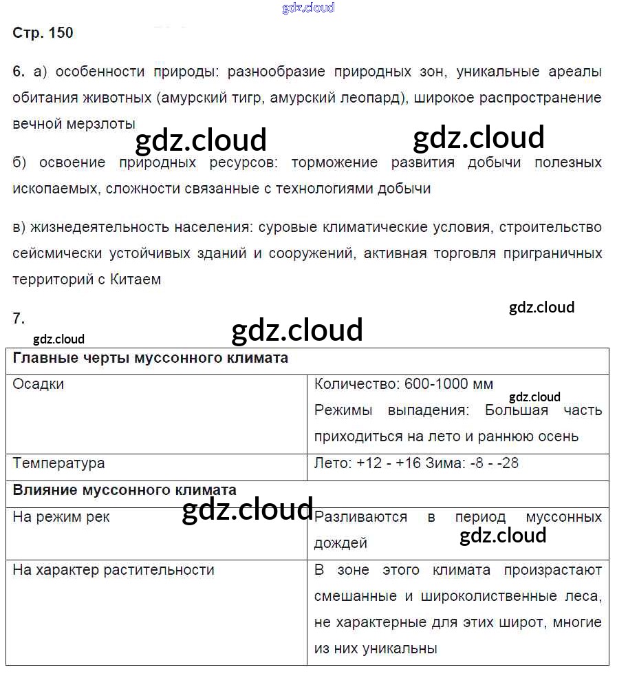 Ответ на задание 150 Рабочая тетрадь География за 9 (девятый) класс Баринова, Дронов Вертикаль 2016 ФГОС онлайн и без номера телефона.