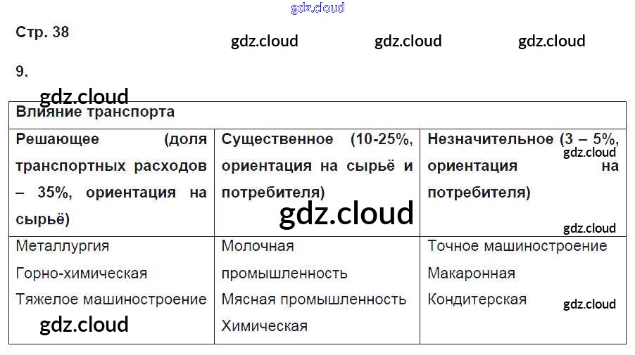 Ответ на задание 38 Рабочая тетрадь География за 9 (девятый) класс Баринова, Дронов Вертикаль 2016 ФГОС онлайн и без номера телефона.