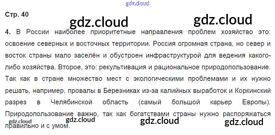 Ответ на задание 40 Рабочая тетрадь География за 9 (девятый) класс Баринова, Дронов Вертикаль 2016 ФГОС онлайн и без номера телефона.