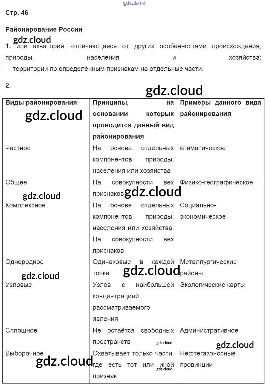 Ответ на задание 46 Рабочая тетрадь География за 9 (девятый) класс Баринова, Дронов Вертикаль 2016 ФГОС онлайн и без номера телефона.