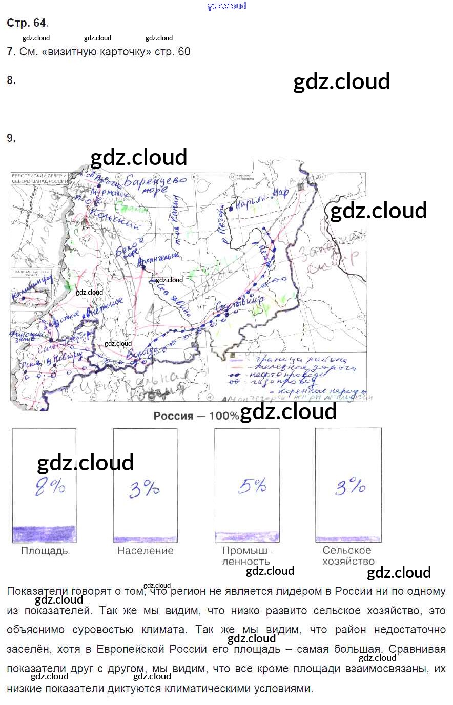 Ответ на задание 64 Рабочая тетрадь География за 9 (девятый) класс Баринова, Дронов Вертикаль 2016 ФГОС онлайн и без номера телефона.