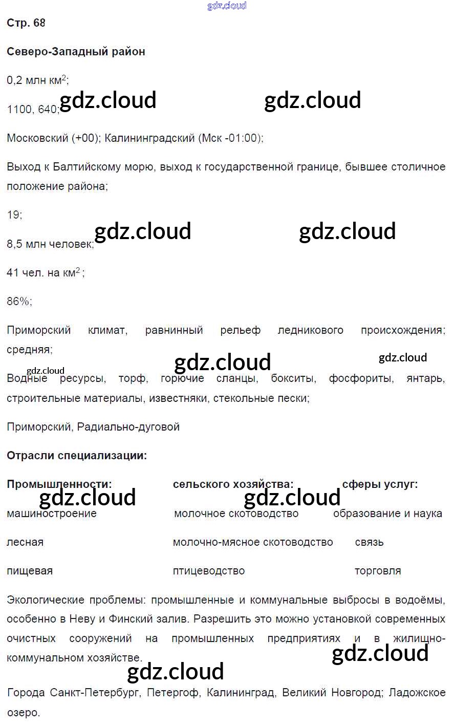 Ответ на задание 68 Рабочая тетрадь География за 9 (девятый) класс Баринова, Дронов Вертикаль 2016 ФГОС онлайн и без номера телефона.