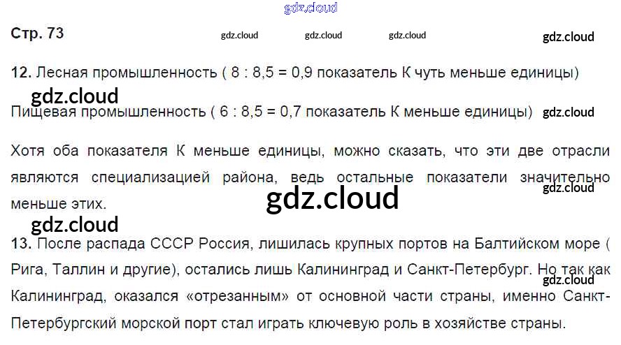 Ответ на задание 73 Рабочая тетрадь География за 9 (девятый) класс Баринова, Дронов Вертикаль 2016 ФГОС онлайн и без номера телефона.