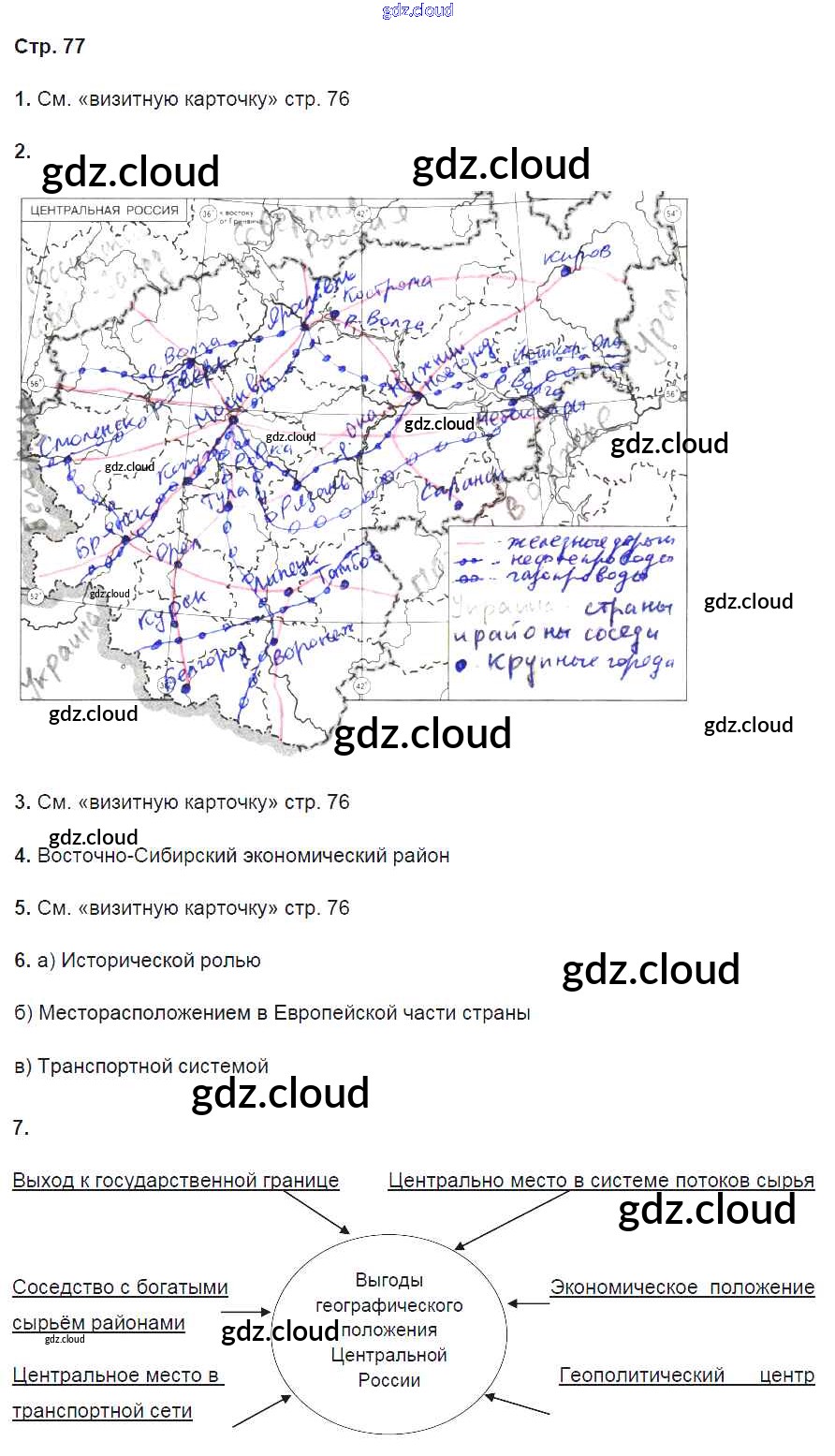 Ответ на задание 77 Рабочая тетрадь География за 9 (девятый) класс Баринова, Дронов Вертикаль 2016 ФГОС онлайн и без номера телефона.