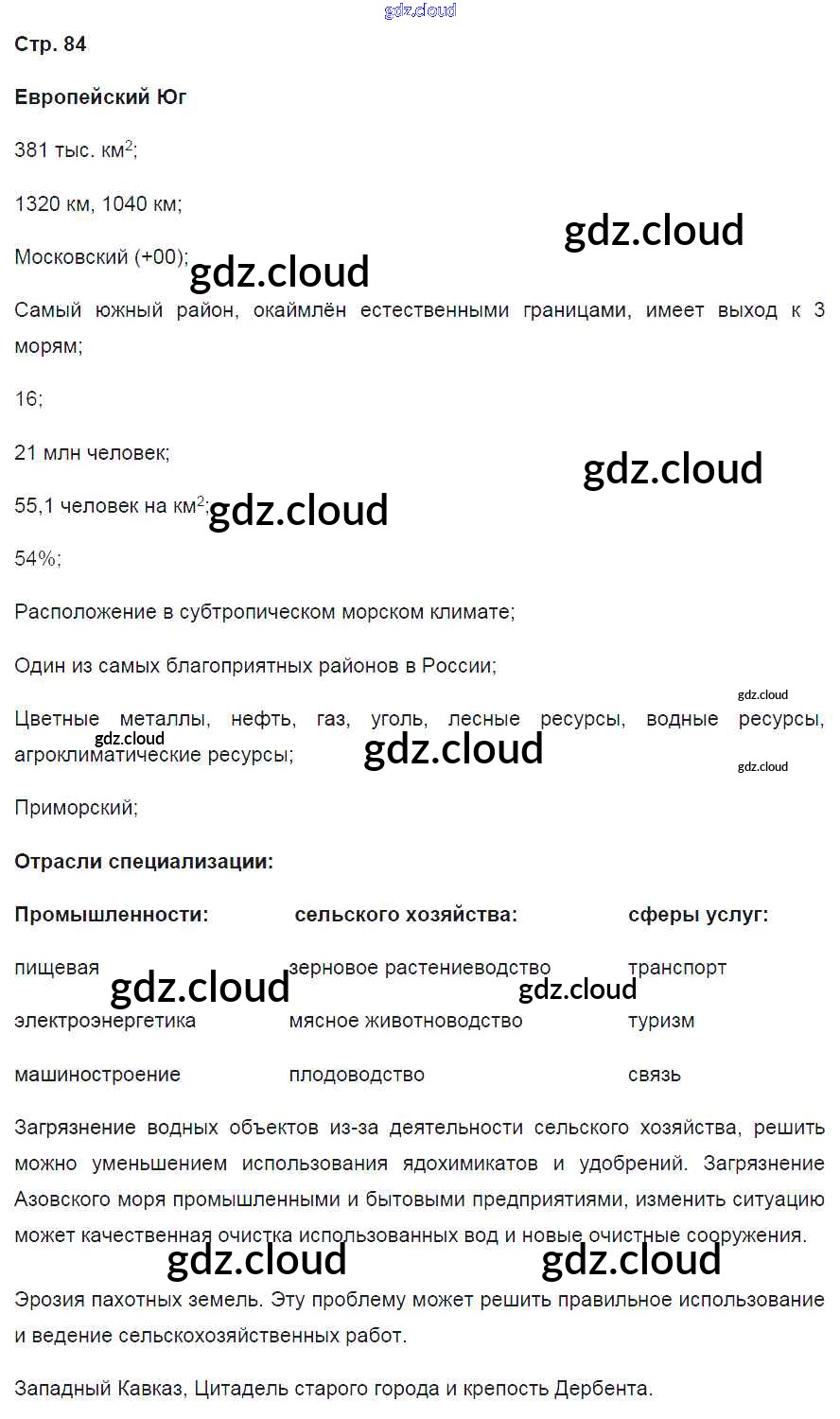 Ответ на задание 84 Рабочая тетрадь География за 9 (девятый) класс Баринова, Дронов Вертикаль 2016 ФГОС онлайн и без номера телефона.