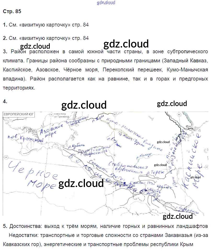 Ответ на задание 85 Рабочая тетрадь География за 9 (девятый) класс Баринова, Дронов Вертикаль 2016 ФГОС онлайн и без номера телефона.