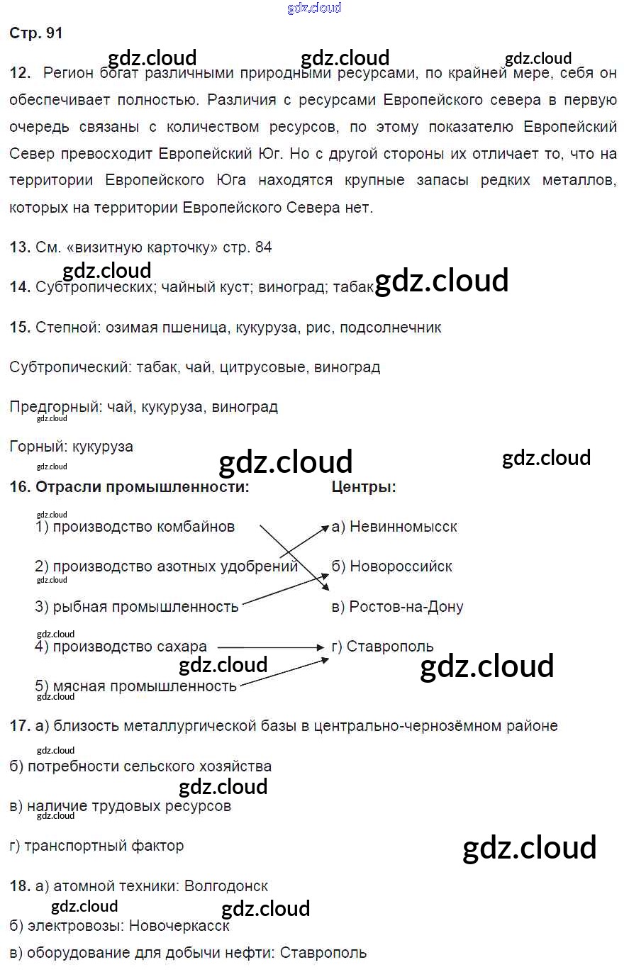 Ответ на задание 91 Рабочая тетрадь География за 9 (девятый) класс Баринова, Дронов Вертикаль 2016 ФГОС онлайн и без номера телефона.