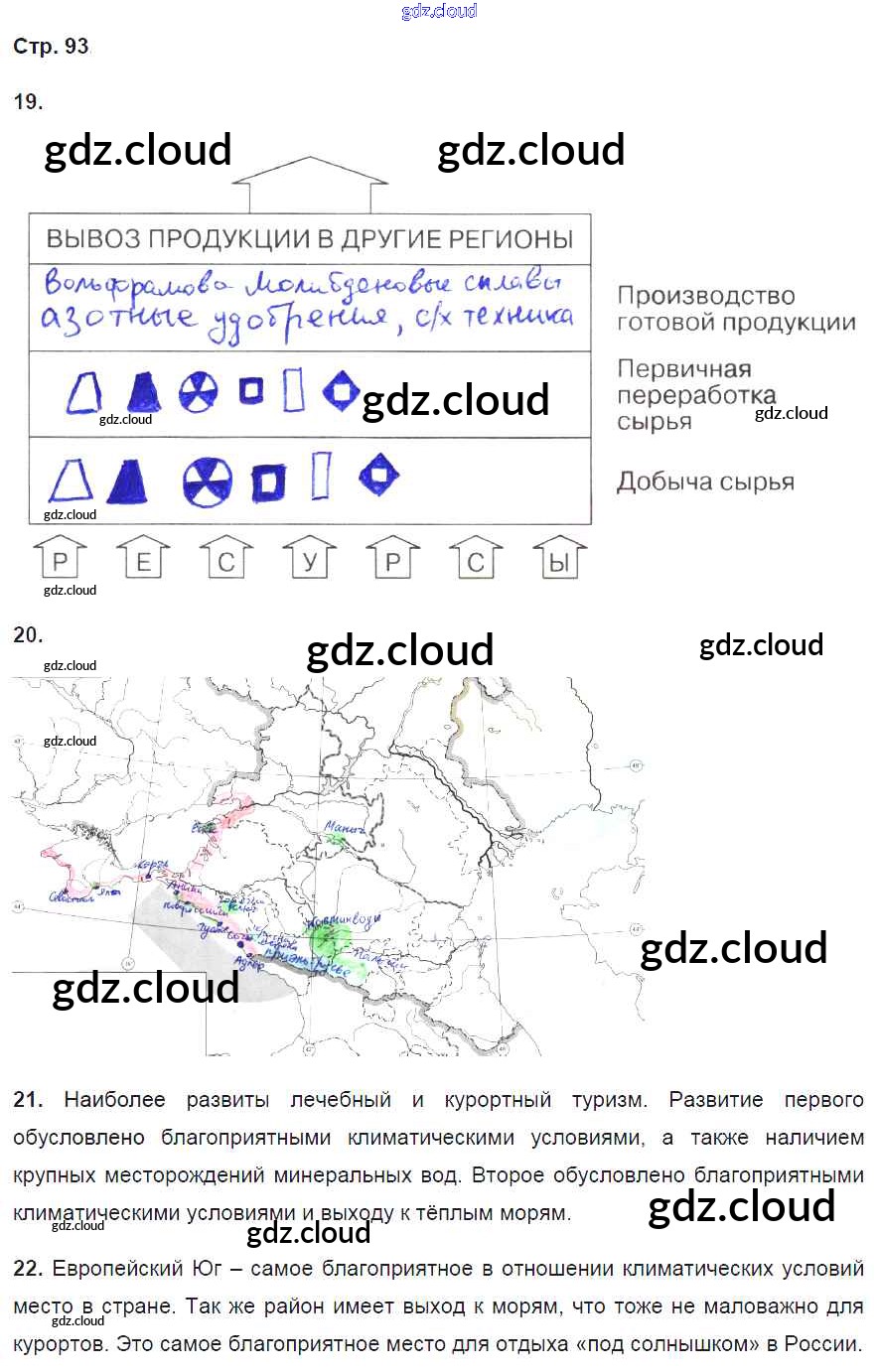 Ответ на задание 93 Рабочая тетрадь География за 9 (девятый) класс Баринова, Дронов Вертикаль 2016 ФГОС онлайн и без номера телефона.
