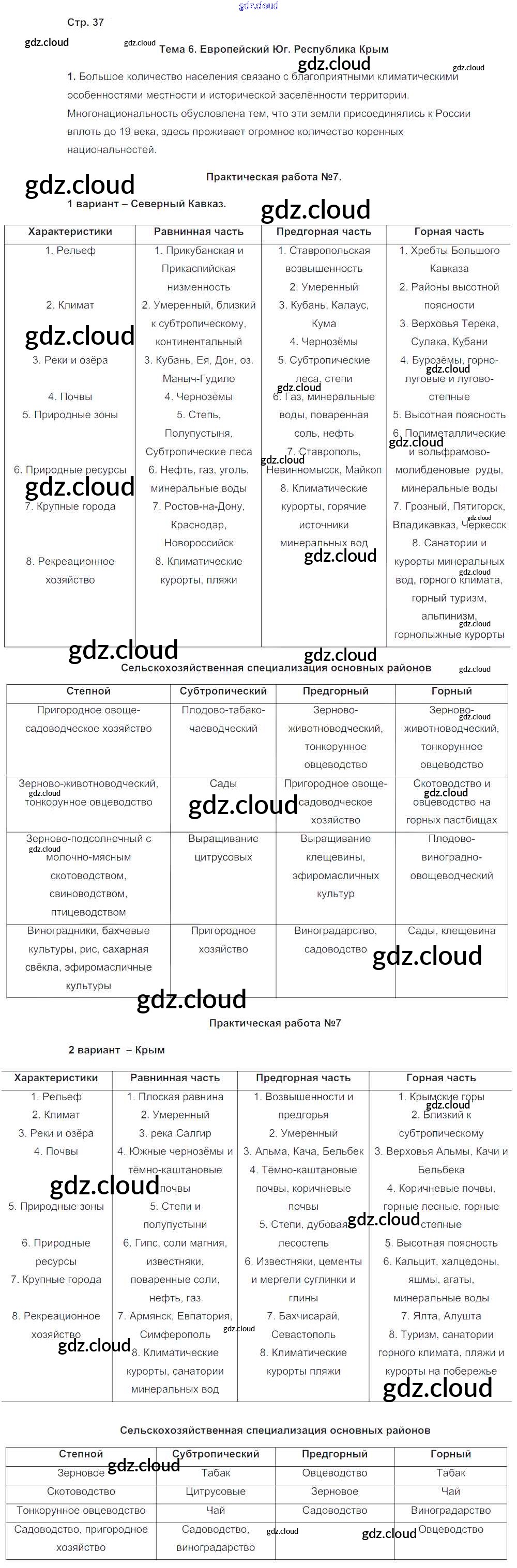 Ответ на задание 37 Рабочая тетрадь с контурными картами География за 9 (девятый) класс Баринова, Суслов УМК 2019 ФГОС онлайн и без номера телефона.