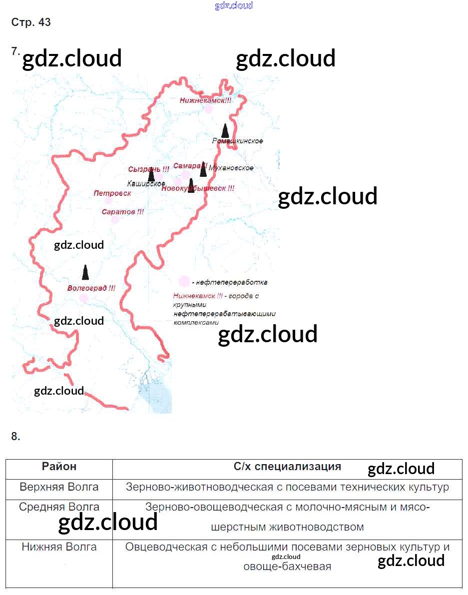 Ответ на задание 43 Рабочая тетрадь с контурными картами География за 9 (девятый) класс Баринова, Суслов УМК 2019 ФГОС онлайн и без номера телефона.