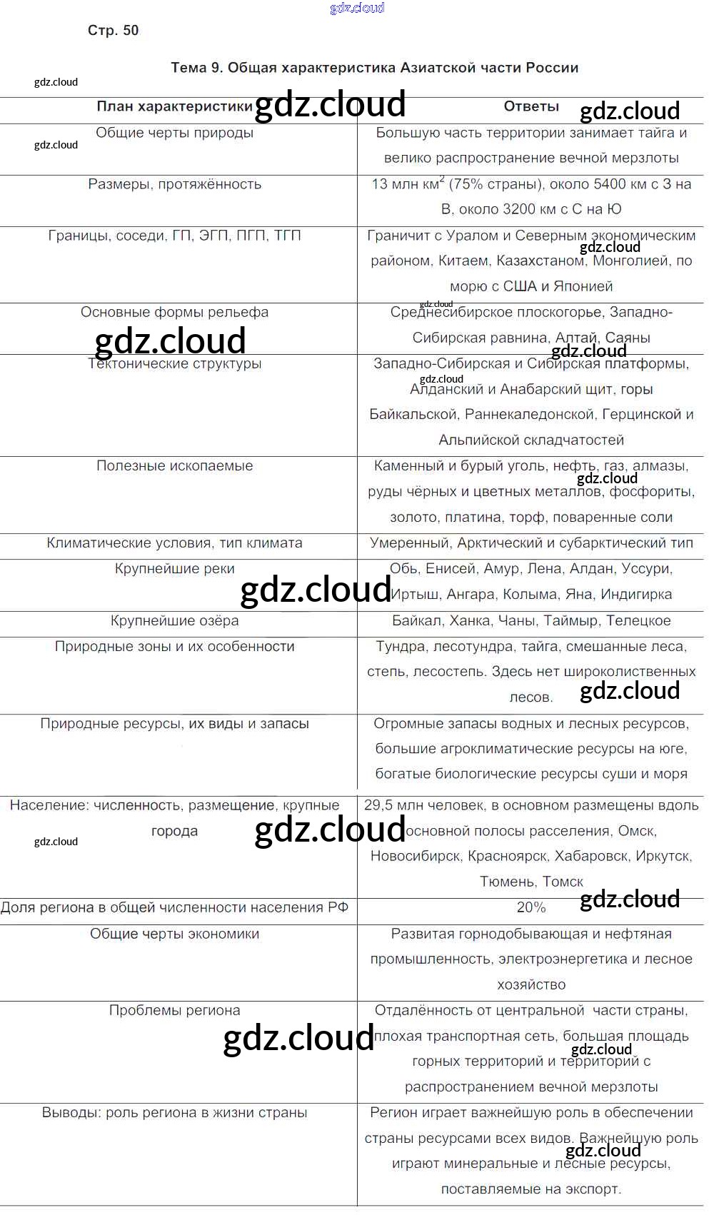 Ответ на задание 50 Рабочая тетрадь с контурными картами География за 9 (девятый) класс Баринова, Суслов УМК 2019 ФГОС онлайн и без номера телефона.