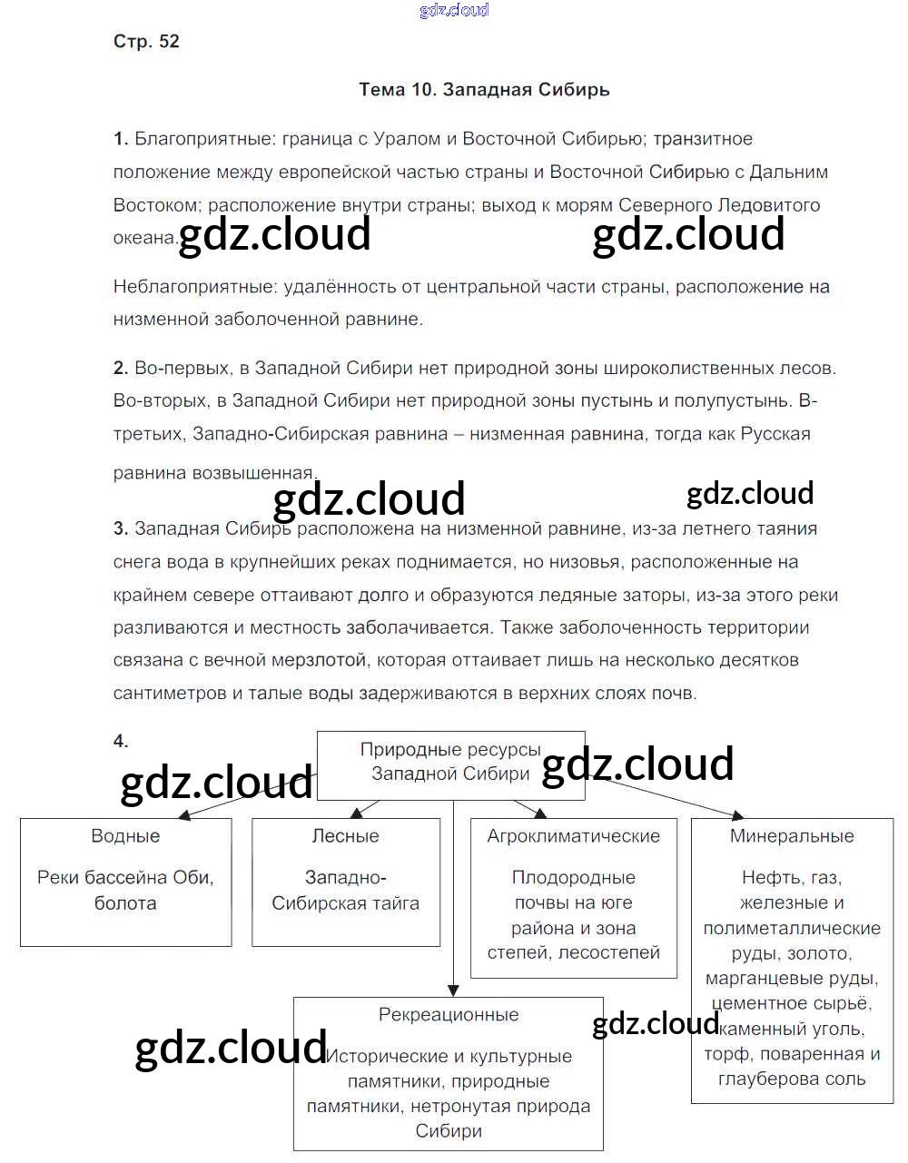 Ответ на задание 52 Рабочая тетрадь с контурными картами География за 9 (девятый) класс Баринова, Суслов УМК 2019 ФГОС онлайн и без номера телефона.