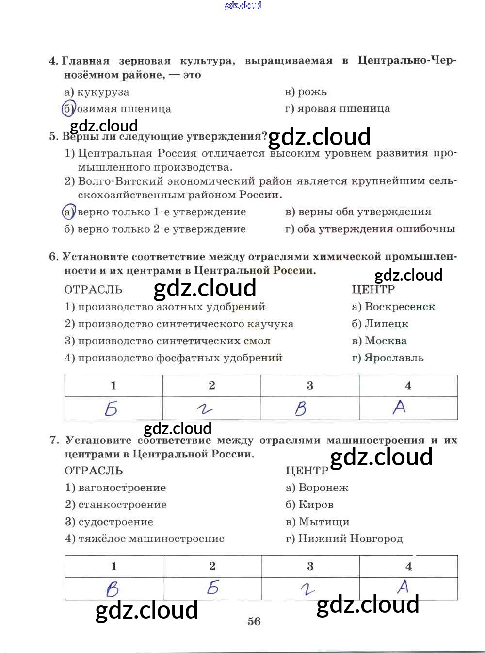 Ответ на задание 56 Рабочая тетрадь География за 9 (девятый) класс Домогацких Инновационная школа 2018 ФГОС онлайн и без номера телефона.