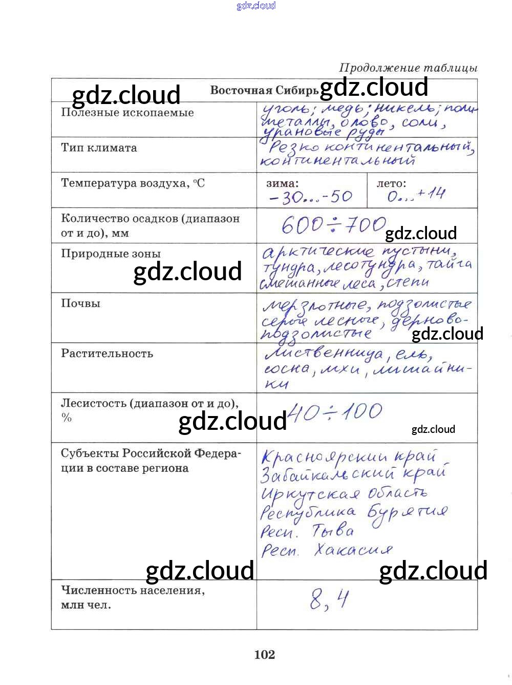 Ответ на задание 102 Рабочая тетрадь География за 9 (девятый) класс Домогацких Инновационная школа 2018 ФГОС онлайн и без номера телефона.
