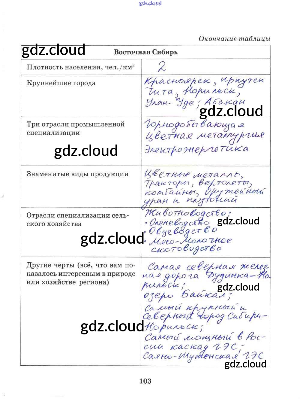 Ответ на задание 103 Рабочая тетрадь География за 9 (девятый) класс Домогацких Инновационная школа 2018 ФГОС онлайн и без номера телефона.