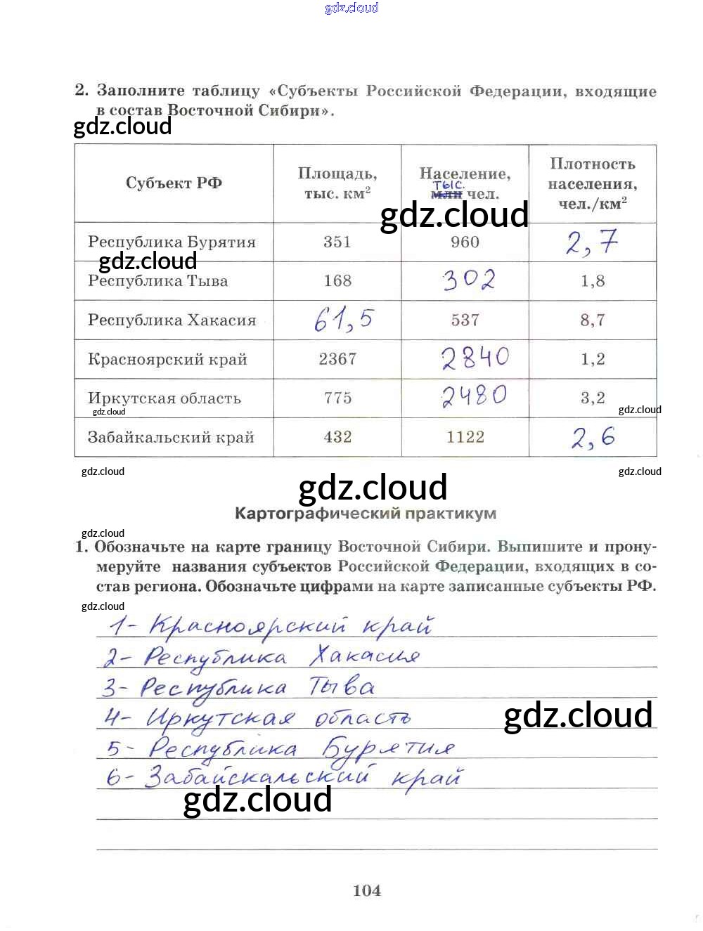 Ответ на задание 104 Рабочая тетрадь География за 9 (девятый) класс Домогацких Инновационная школа 2018 ФГОС онлайн и без номера телефона.