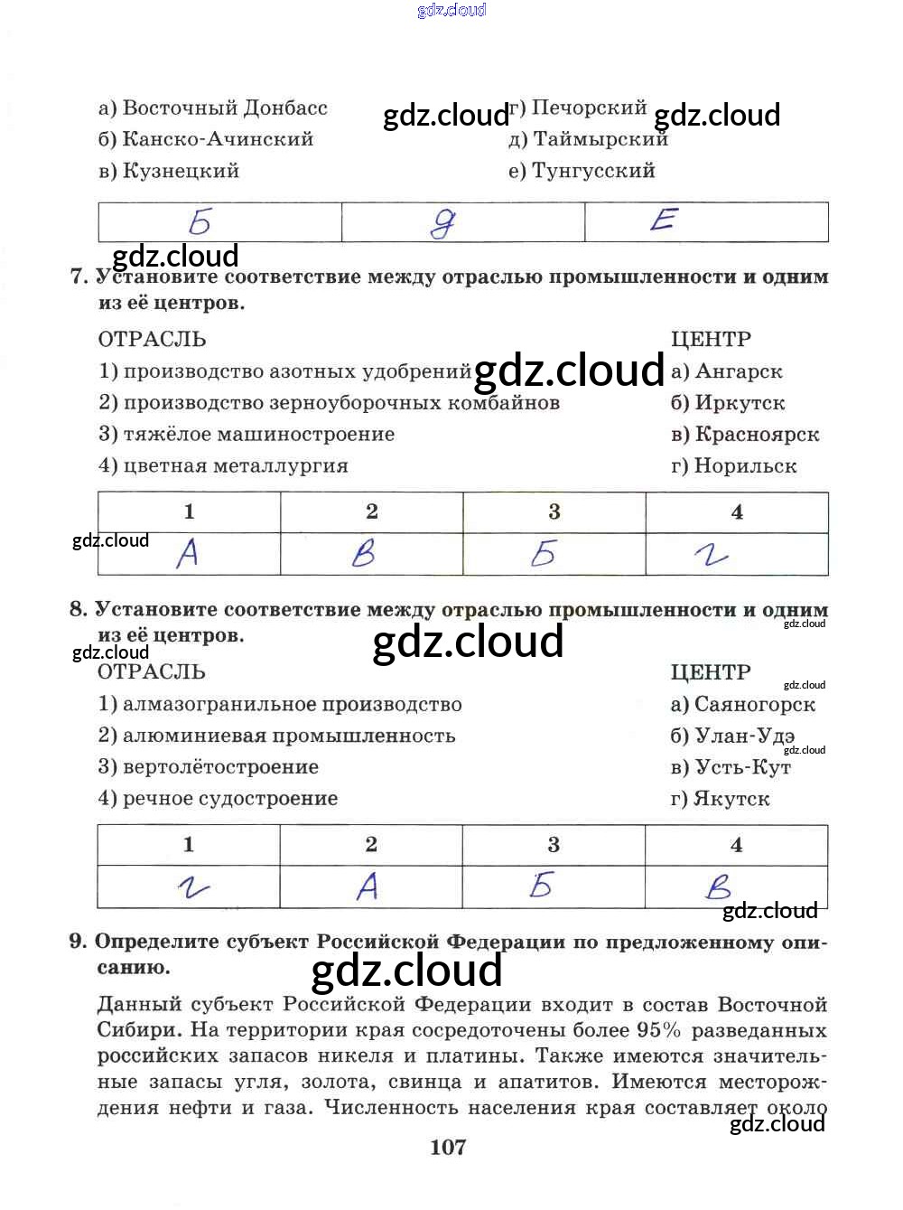 Ответ на задание 107 Рабочая тетрадь География за 9 (девятый) класс Домогацких Инновационная школа 2018 ФГОС онлайн и без номера телефона.