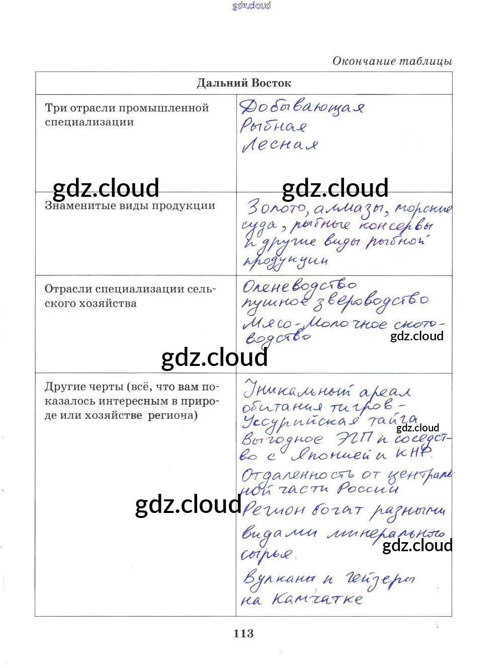 Ответ на задание 113 Рабочая тетрадь География за 9 (девятый) класс Домогацких Инновационная школа 2018 ФГОС онлайн и без номера телефона.