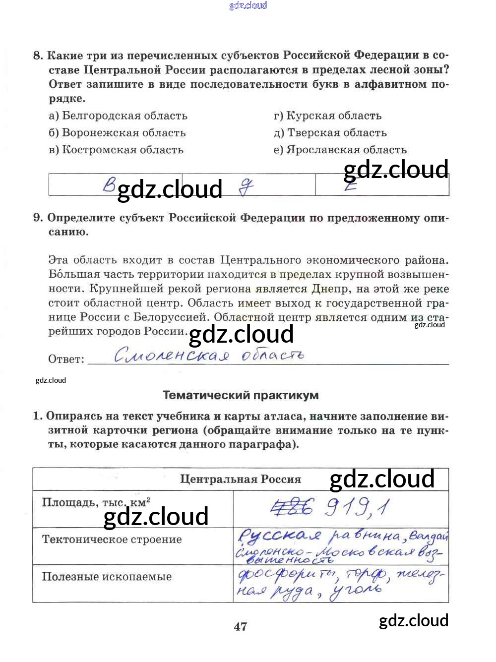 Ответ на задание 47 Рабочая тетрадь География за 9 (девятый) класс Домогацких Инновационная школа 2018 ФГОС онлайн и без номера телефона.