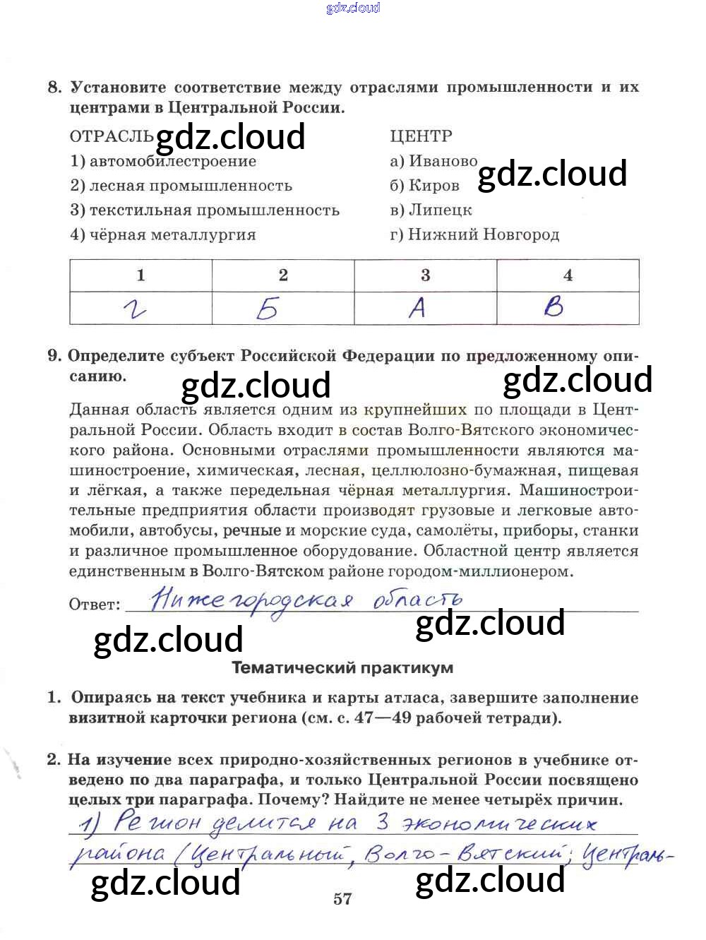 Ответ на задание 57 Рабочая тетрадь География за 9 (девятый) класс Домогацких Инновационная школа 2018 ФГОС онлайн и без номера телефона.