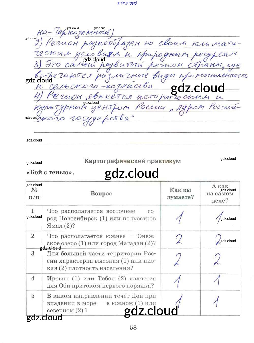 Ответ на задание 58 Рабочая тетрадь География за 9 (девятый) класс Домогацких Инновационная школа 2018 ФГОС онлайн и без номера телефона.