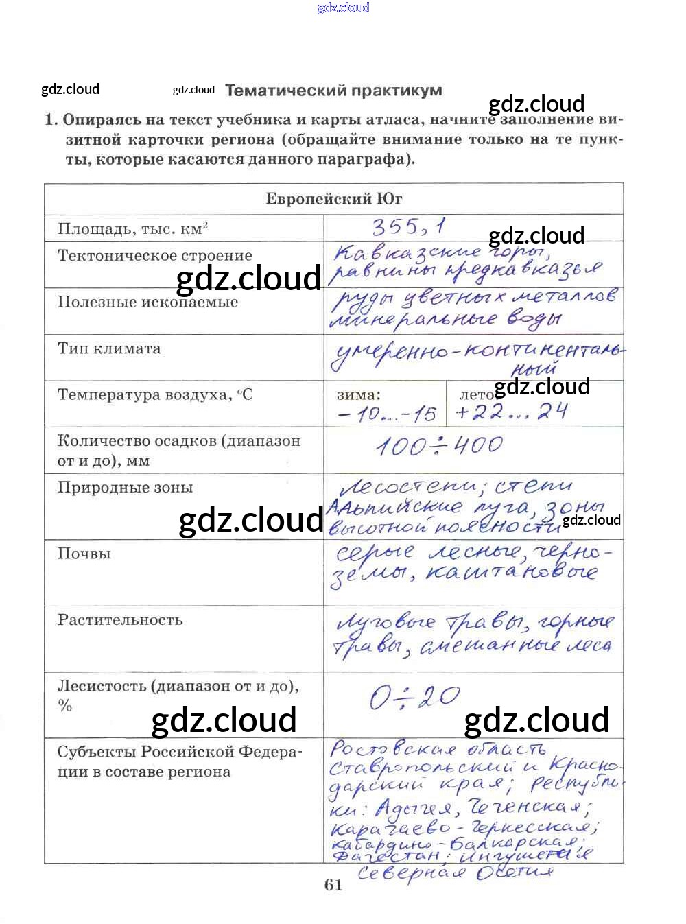 Ответ на задание 61 Рабочая тетрадь География за 9 (девятый) класс Домогацких Инновационная школа 2018 ФГОС онлайн и без номера телефона.