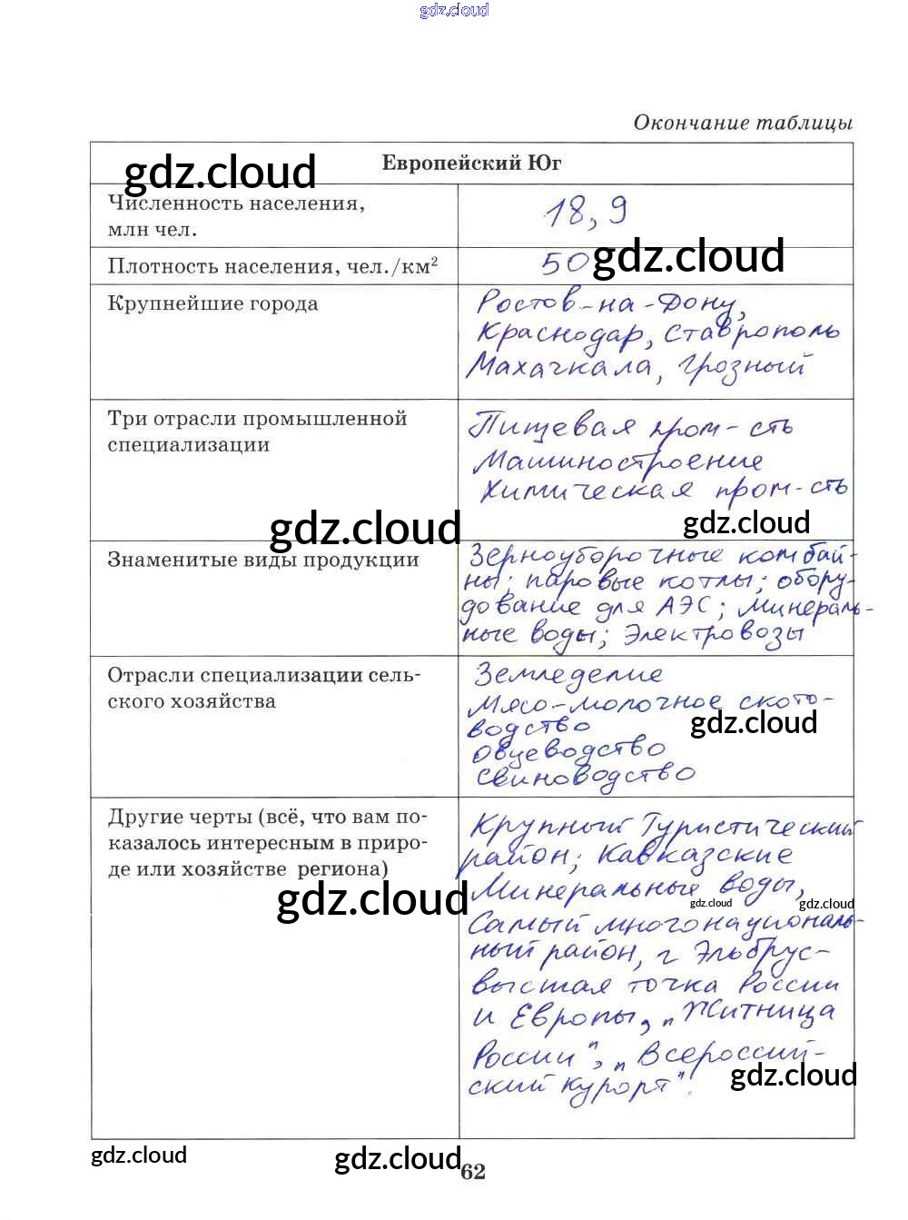 Ответ на задание 62 Рабочая тетрадь География за 9 (девятый) класс Домогацких Инновационная школа 2018 ФГОС онлайн и без номера телефона.