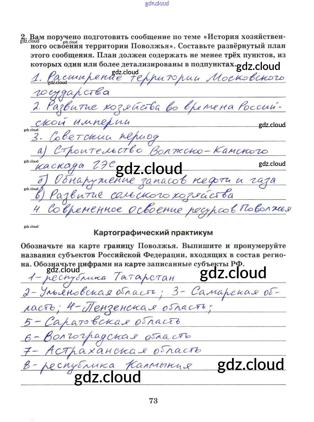 Ответ на задание 73 Рабочая тетрадь География за 9 (девятый) класс Домогацких Инновационная школа 2018 ФГОС онлайн и без номера телефона.