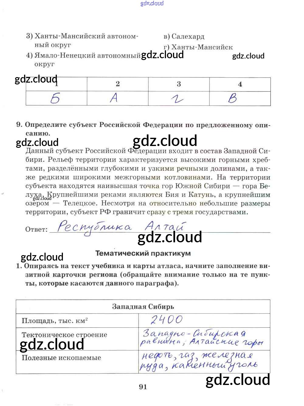 Ответ на задание 91 Рабочая тетрадь География за 9 (девятый) класс Домогацких Инновационная школа 2018 ФГОС онлайн и без номера телефона.