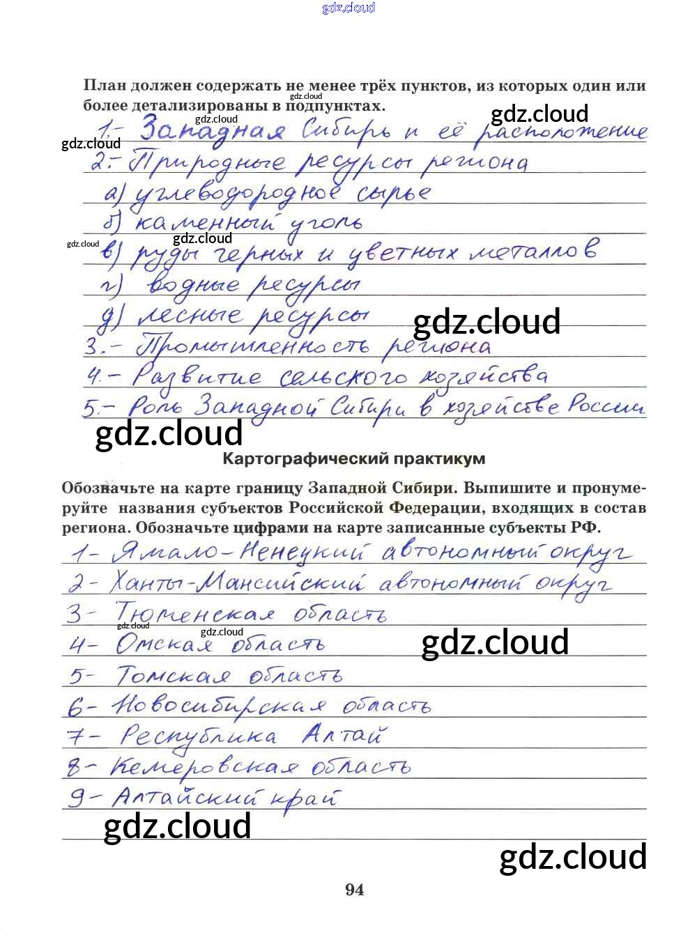 Ответ на задание 94 Рабочая тетрадь География за 9 (девятый) класс Домогацких Инновационная школа 2018 ФГОС онлайн и без номера телефона.
