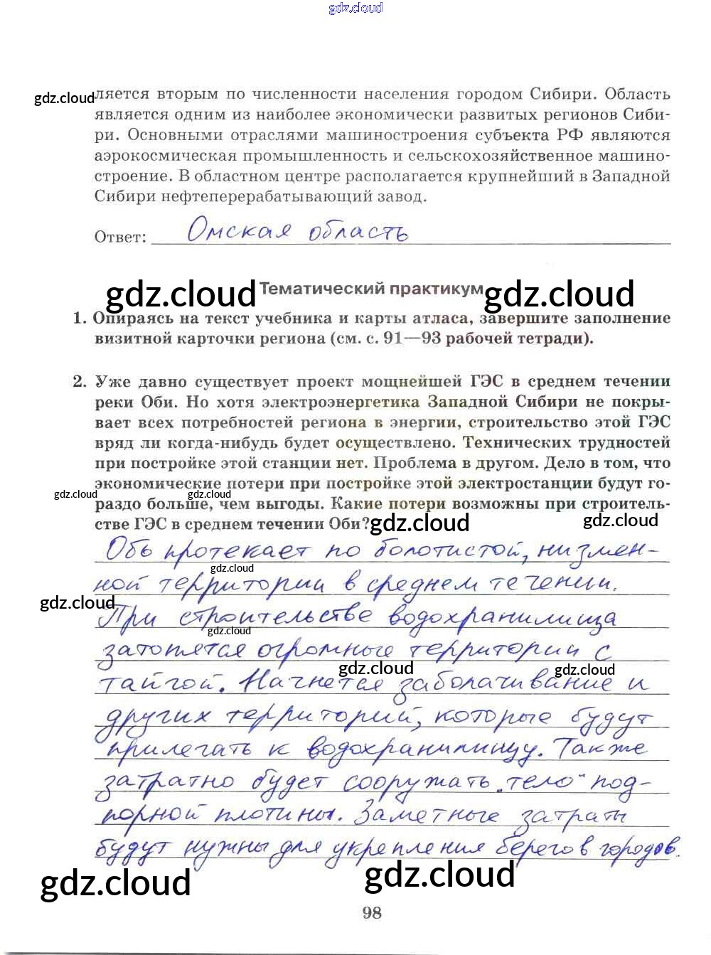 Ответ на задание 98 Рабочая тетрадь География за 9 (девятый) класс Домогацких Инновационная школа 2018 ФГОС онлайн и без номера телефона.