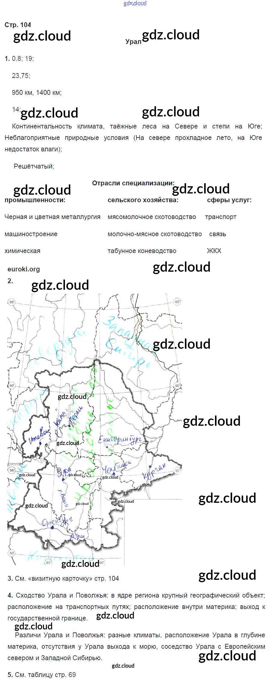 Ответ на задание 104 Рабочая тетрадь География за 9 (девятый) класс Дронов Вертикаль 2020 ФГОС онлайн и без номера телефона.