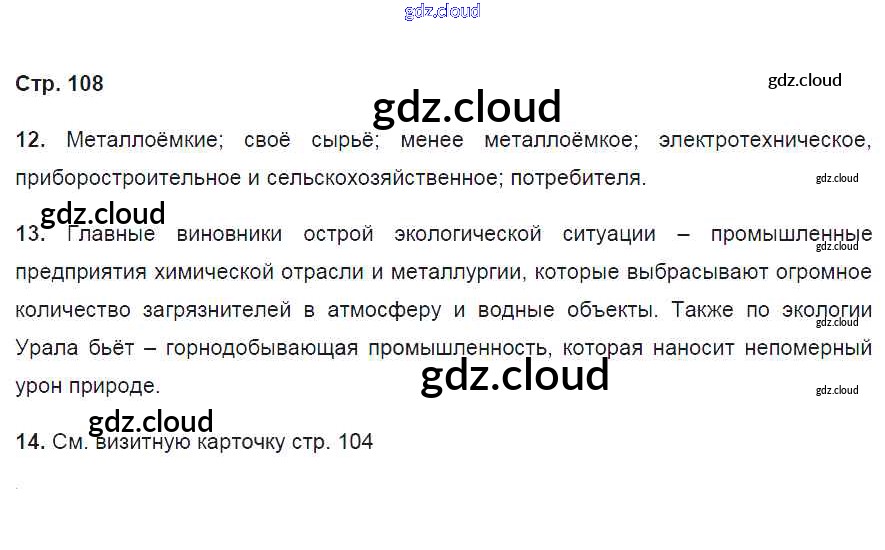 Ответ на задание 108 Рабочая тетрадь География за 9 (девятый) класс Дронов Вертикаль 2020 ФГОС онлайн и без номера телефона.