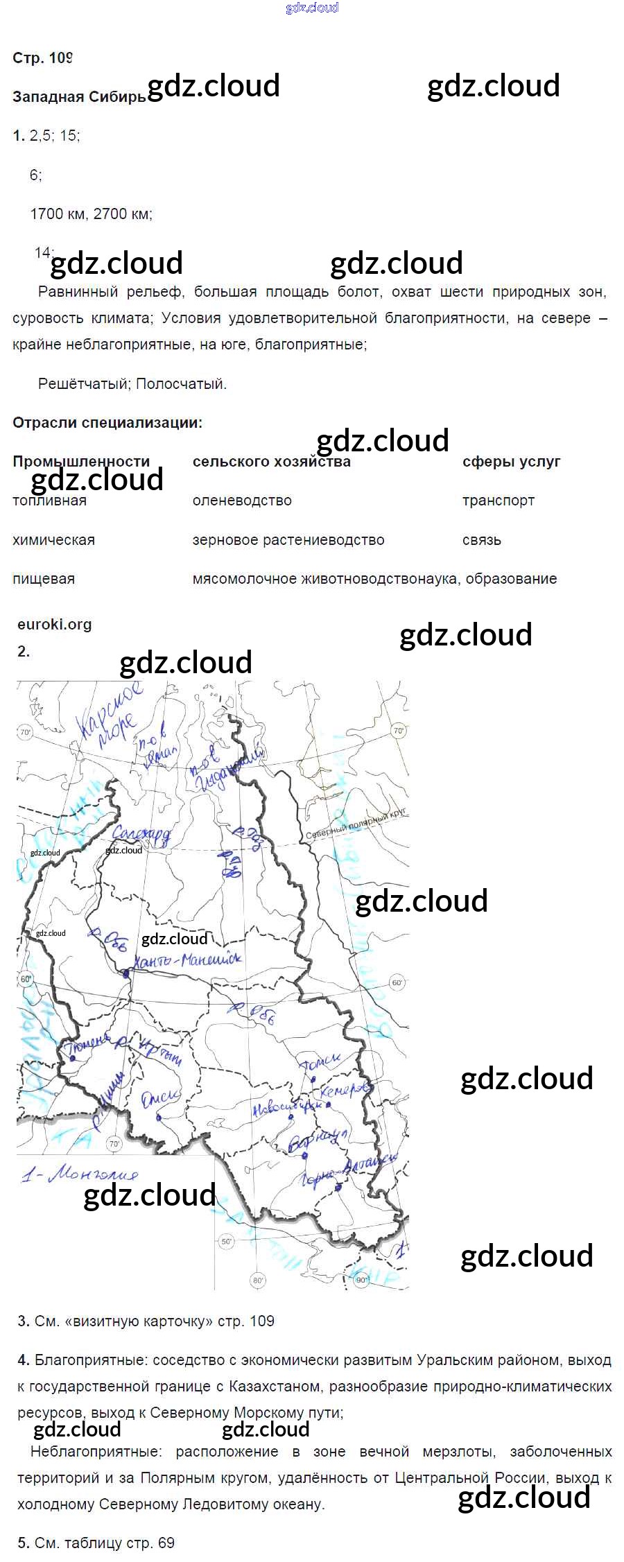 Ответ на задание 109 Рабочая тетрадь География за 9 (девятый) класс Дронов Вертикаль 2020 ФГОС онлайн и без номера телефона.