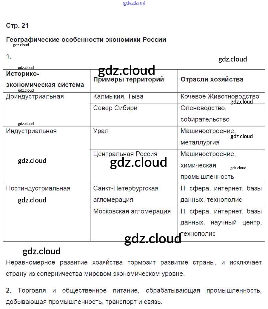 Ответ на задание 21 Рабочая тетрадь География за 9 (девятый) класс Дронов Вертикаль 2020 ФГОС онлайн и без номера телефона.