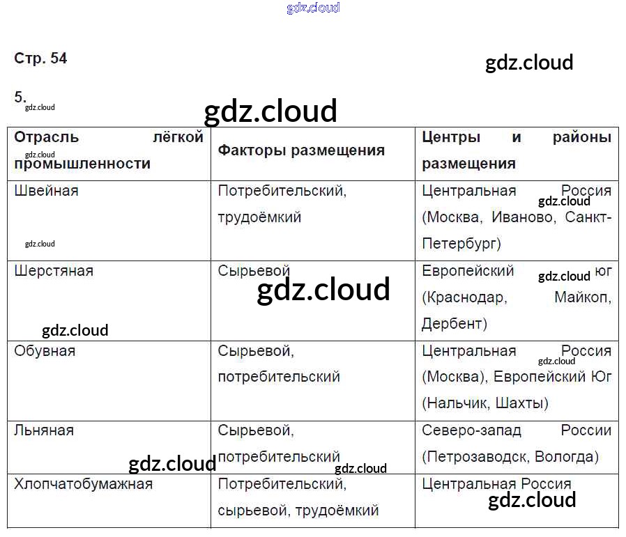 Ответ на задание 54 Рабочая тетрадь География за 9 (девятый) класс Дронов Вертикаль 2020 ФГОС онлайн и без номера телефона.