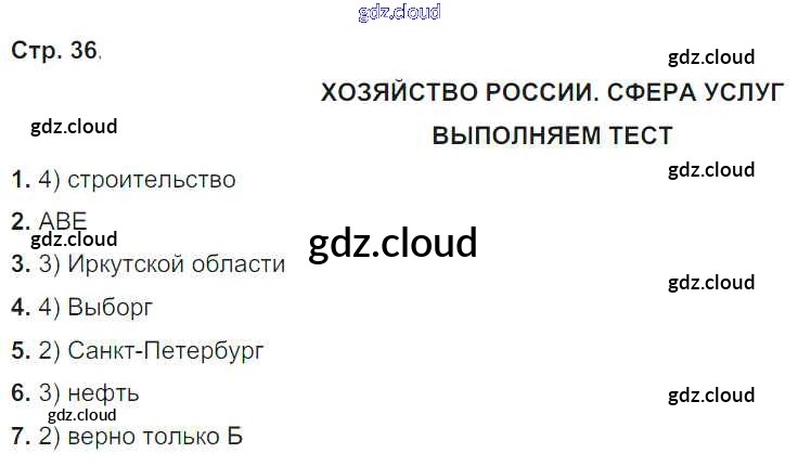 Ответ на задание стр.36 Тетрадь-тренажер География за 9 (девятый) класс Ходова, Ольховая Сферы 2016