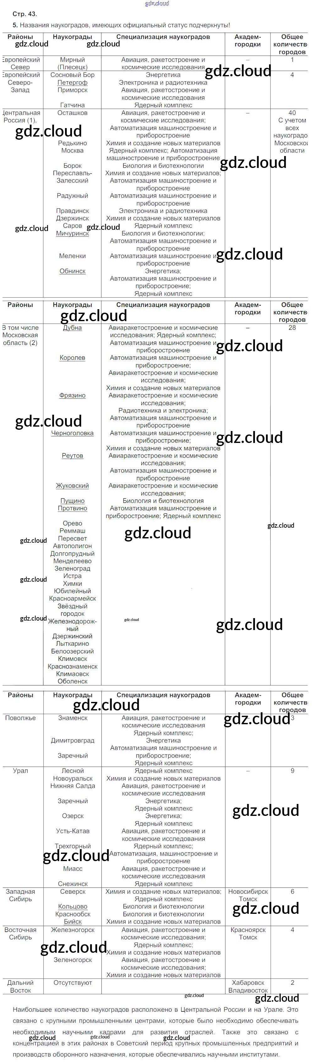 Ответ на задание стр.43 Тетрадь-тренажер География за 9 (девятый) класс Ходова, Ольховая Сферы 2016