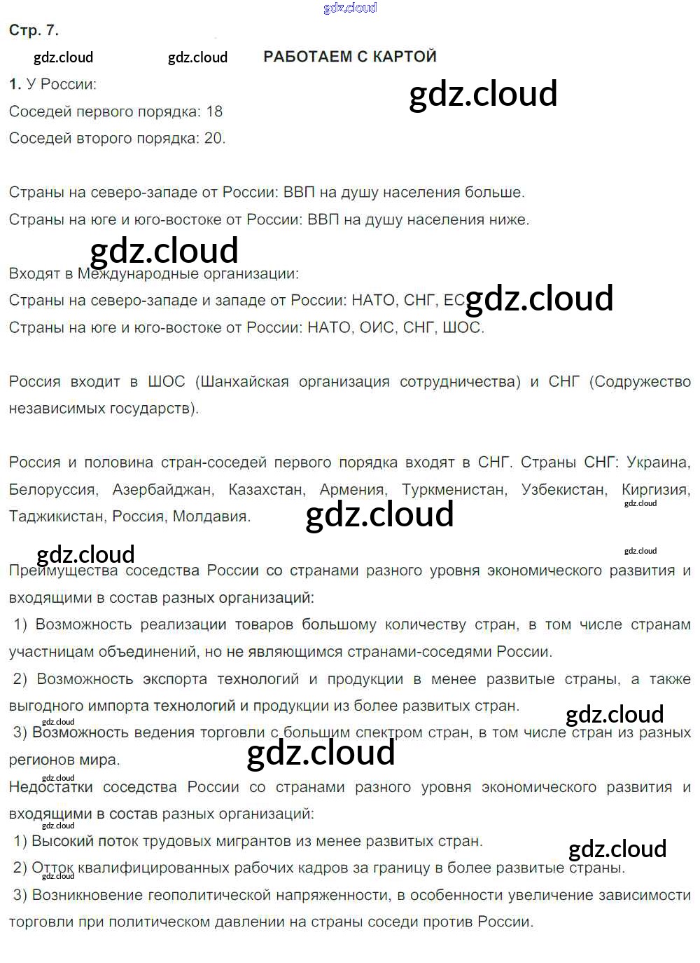 Ответ на задание стр.7 Тетрадь-тренажер География за 9 (девятый) класс Ходова, Ольховая Сферы 2016 ФГОС онлайн и без номера телефона.